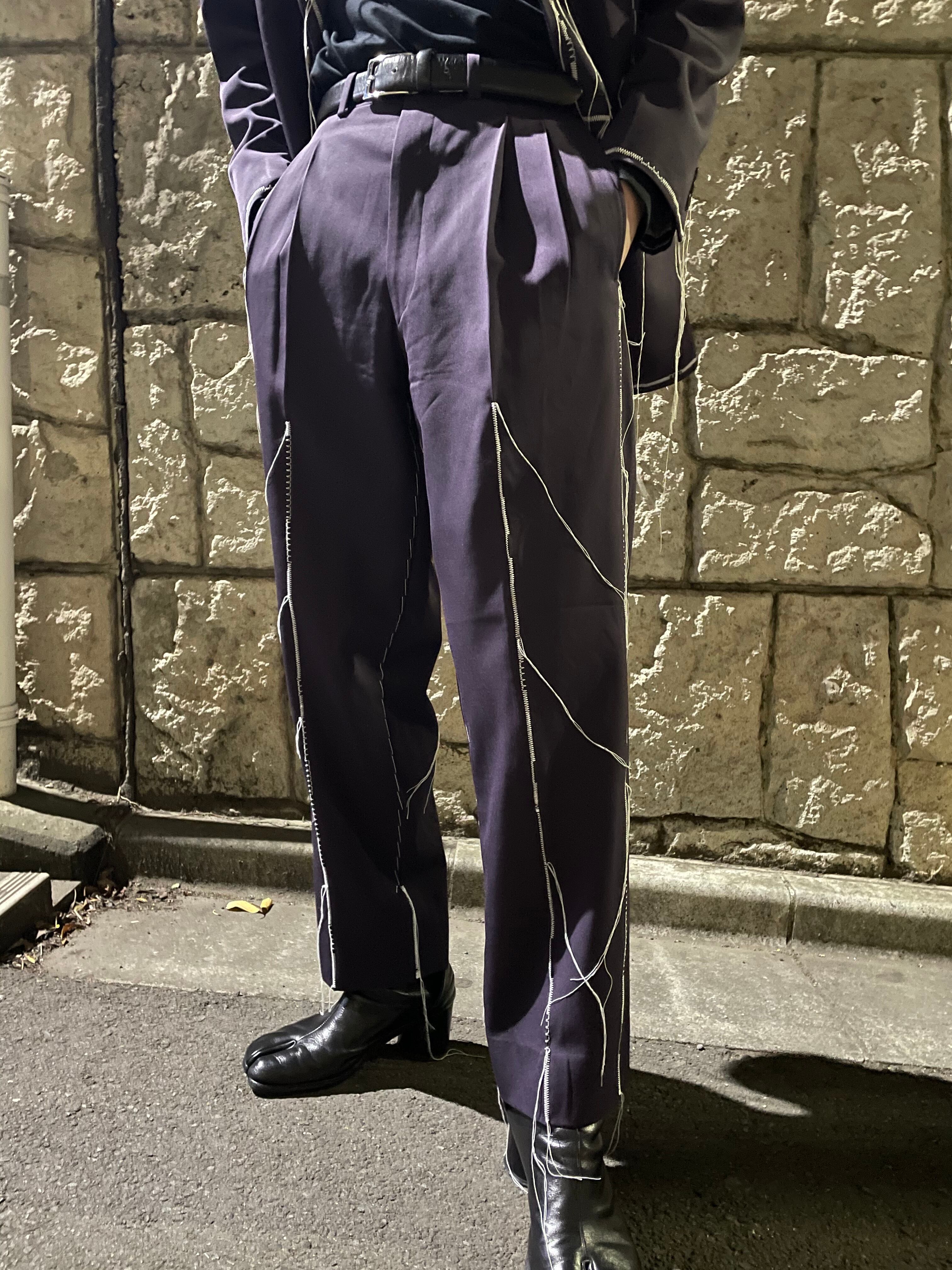 スラックスにランダムステッチを加えた1着