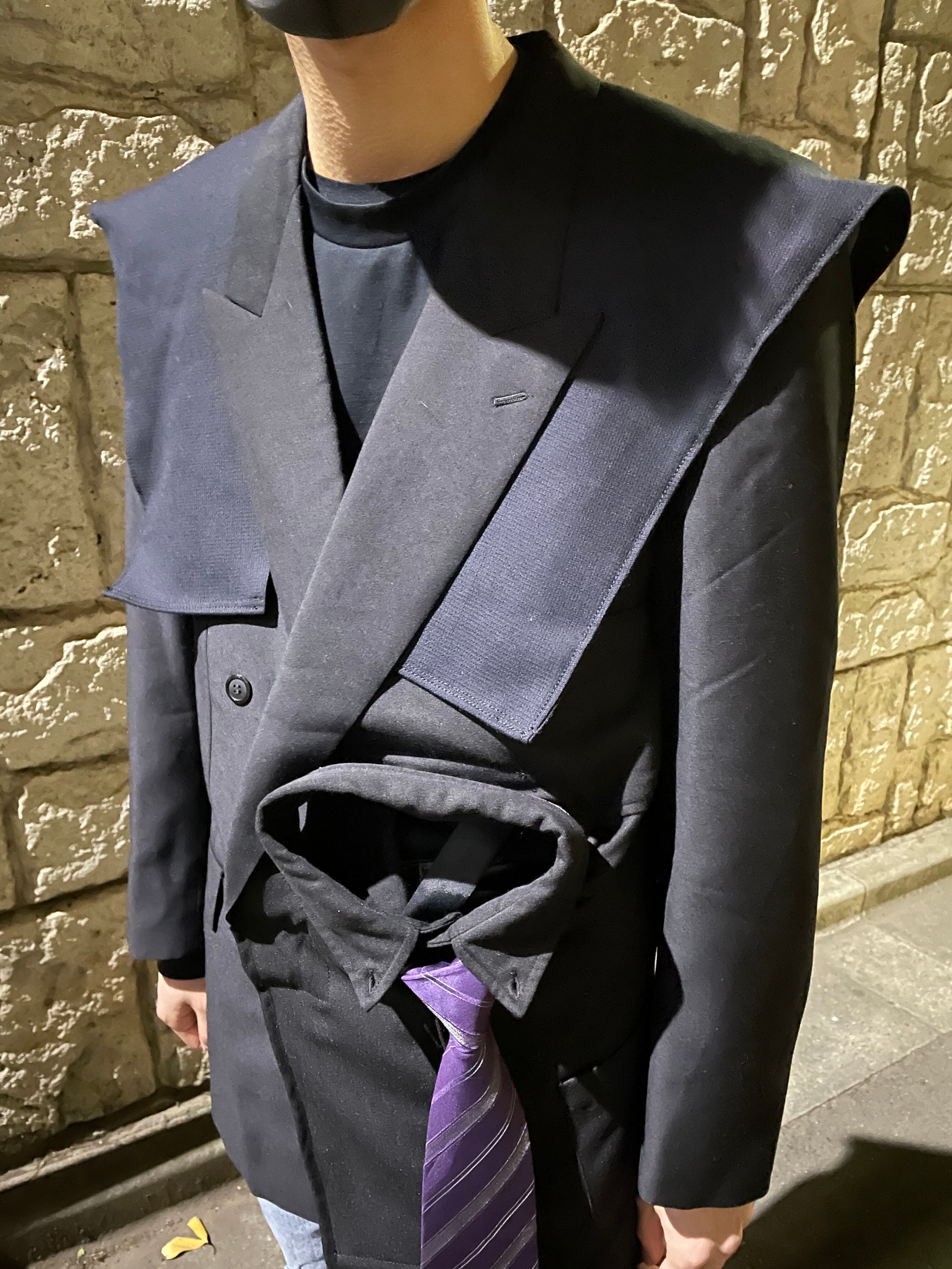 シャツ、ジャケット、パンツのコーディネートが1つに合わさった1着