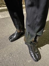 Discharge worn out Jacketとセットアップで着用できるパンツ。