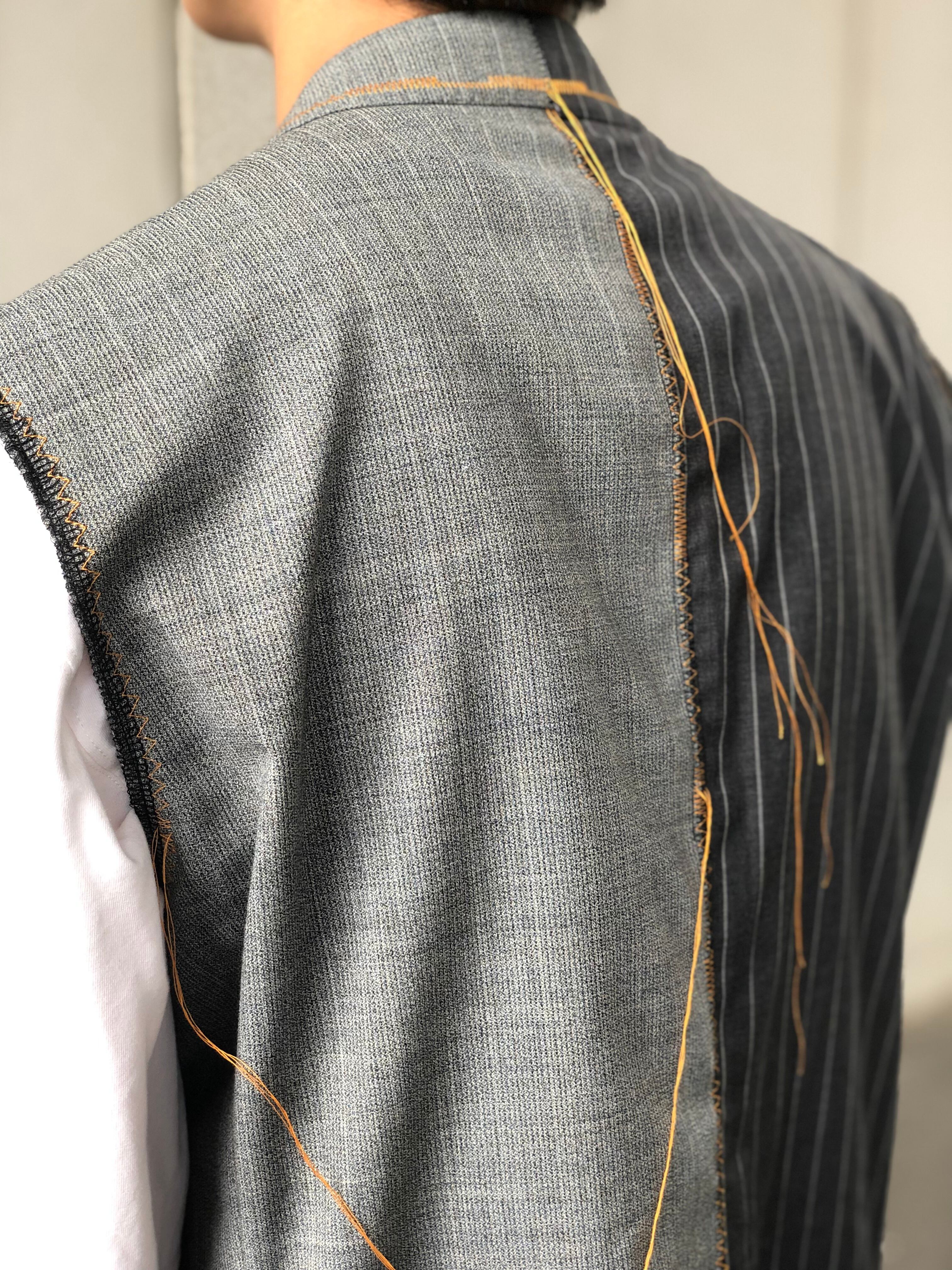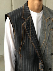 バイカラーのテーラードジャケットの袖を落とし、ベストに仕立て直したテーラードベスト。