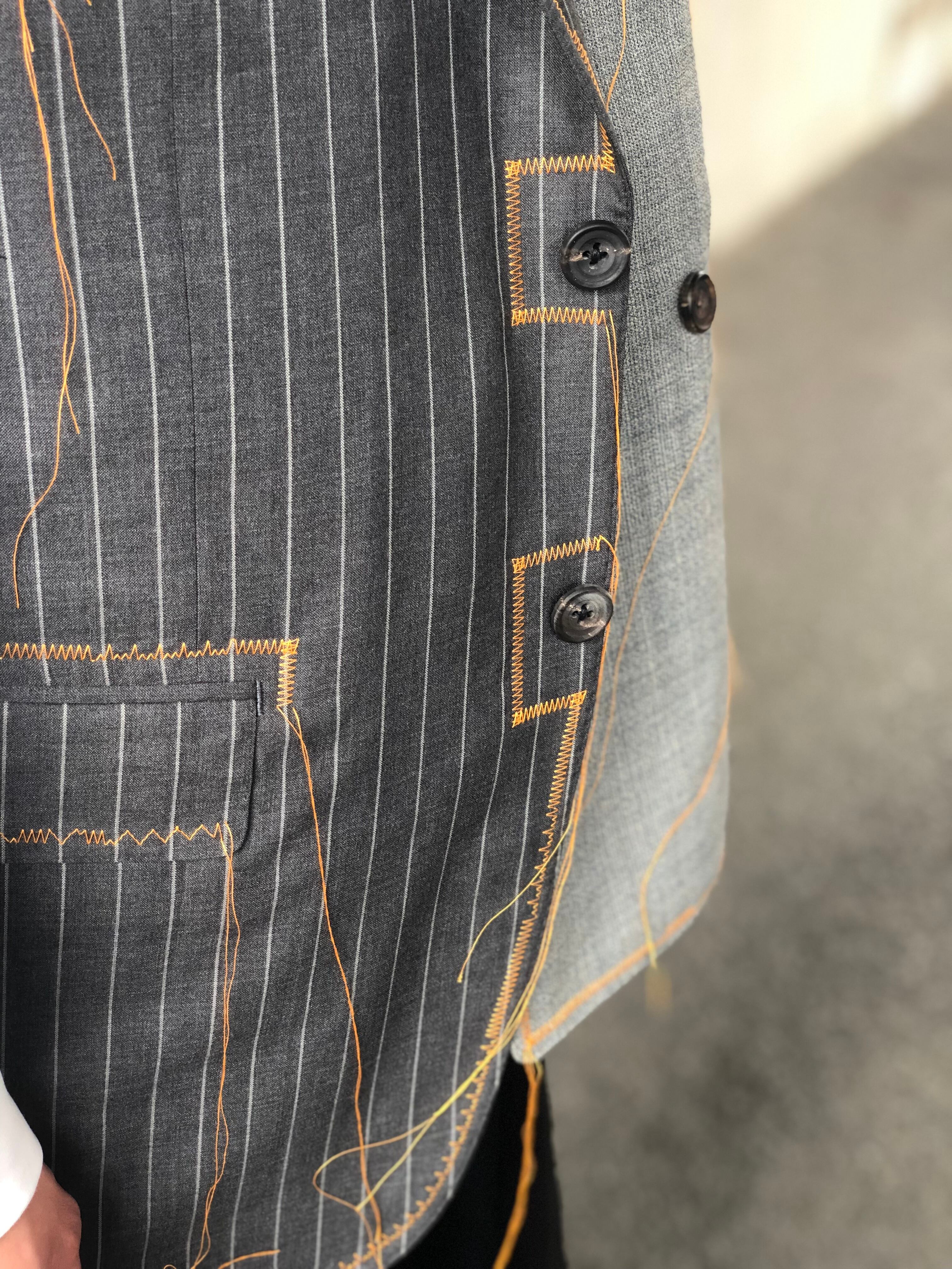そこにランダムステッチを入れるアクセントを加えた一着。
