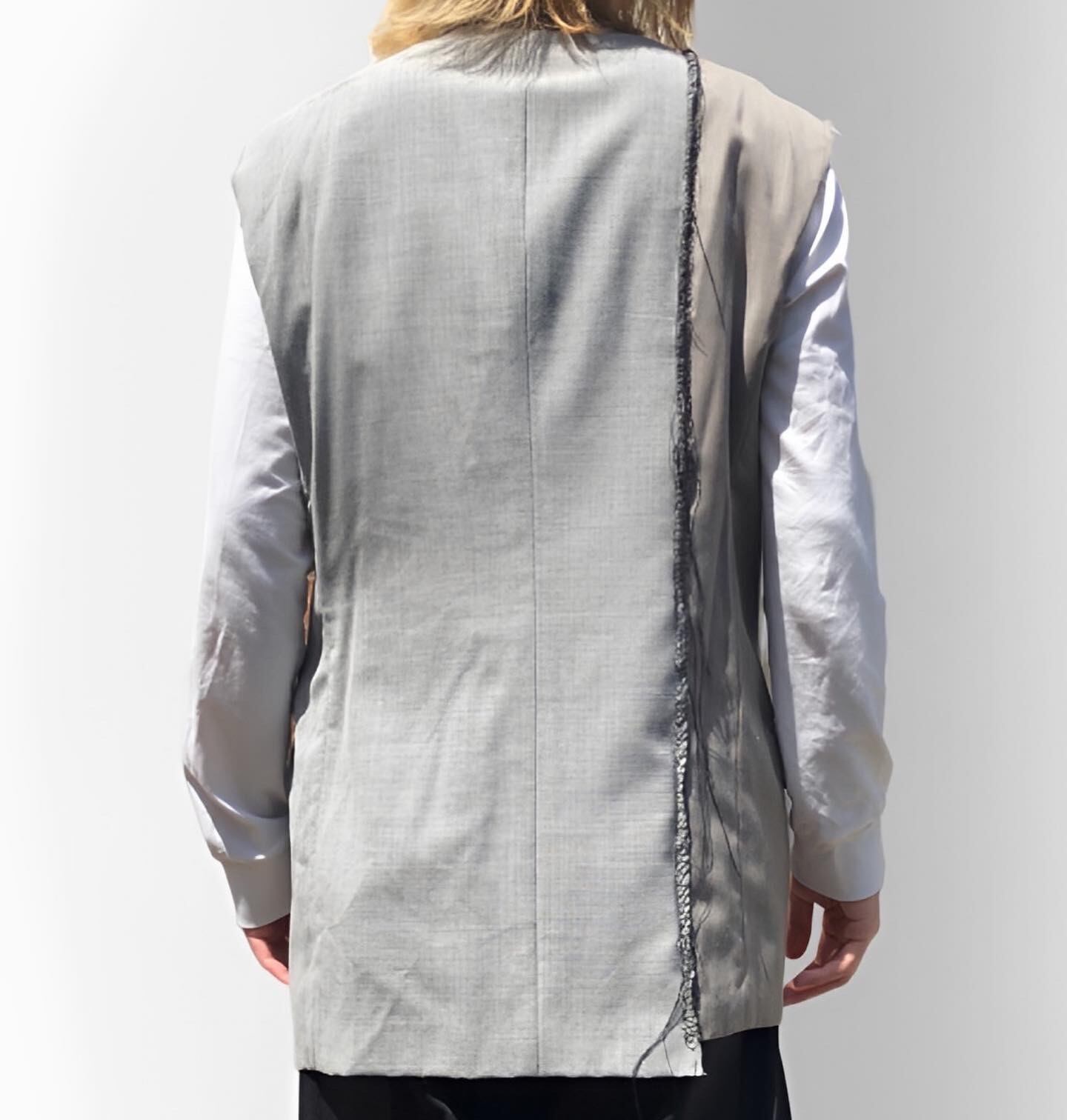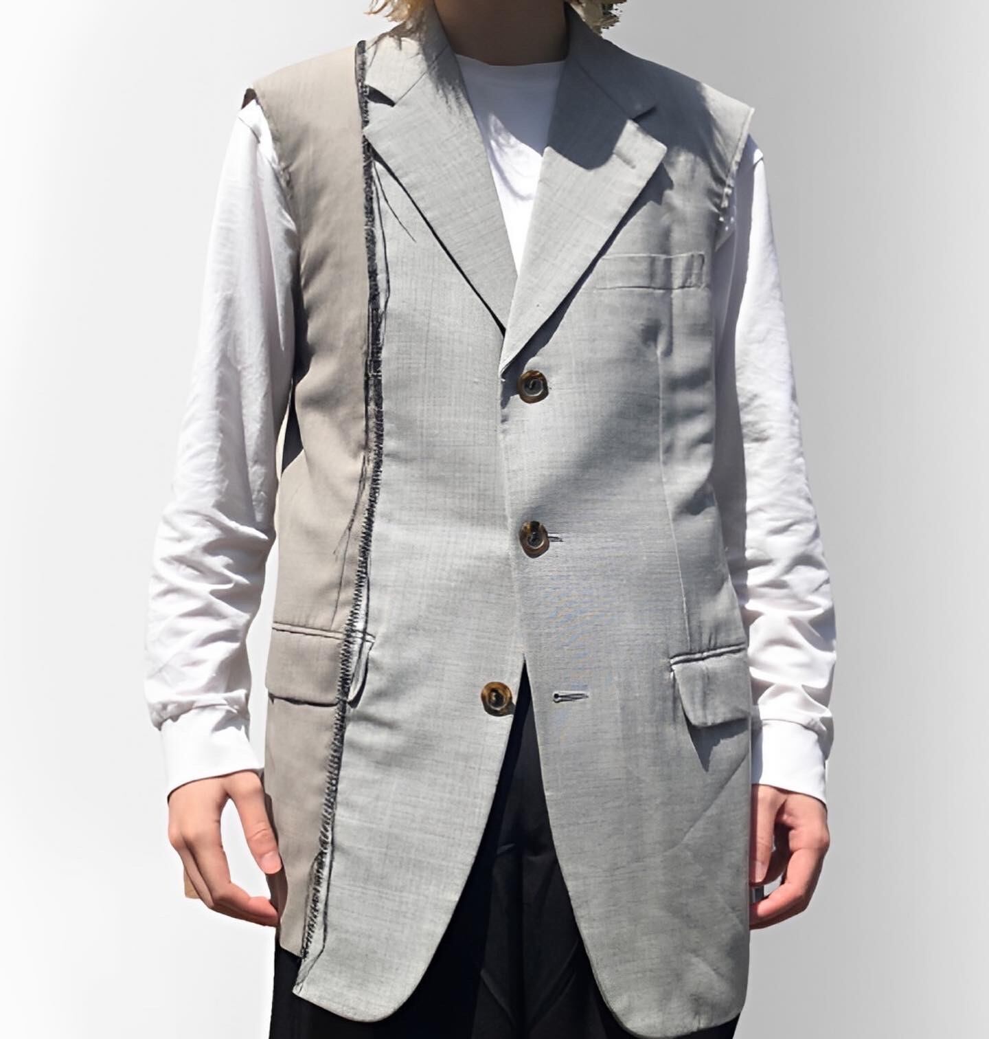色味の違うジャケットを縫い合わせ、ハンドステッチを加えたテーラードベスト。