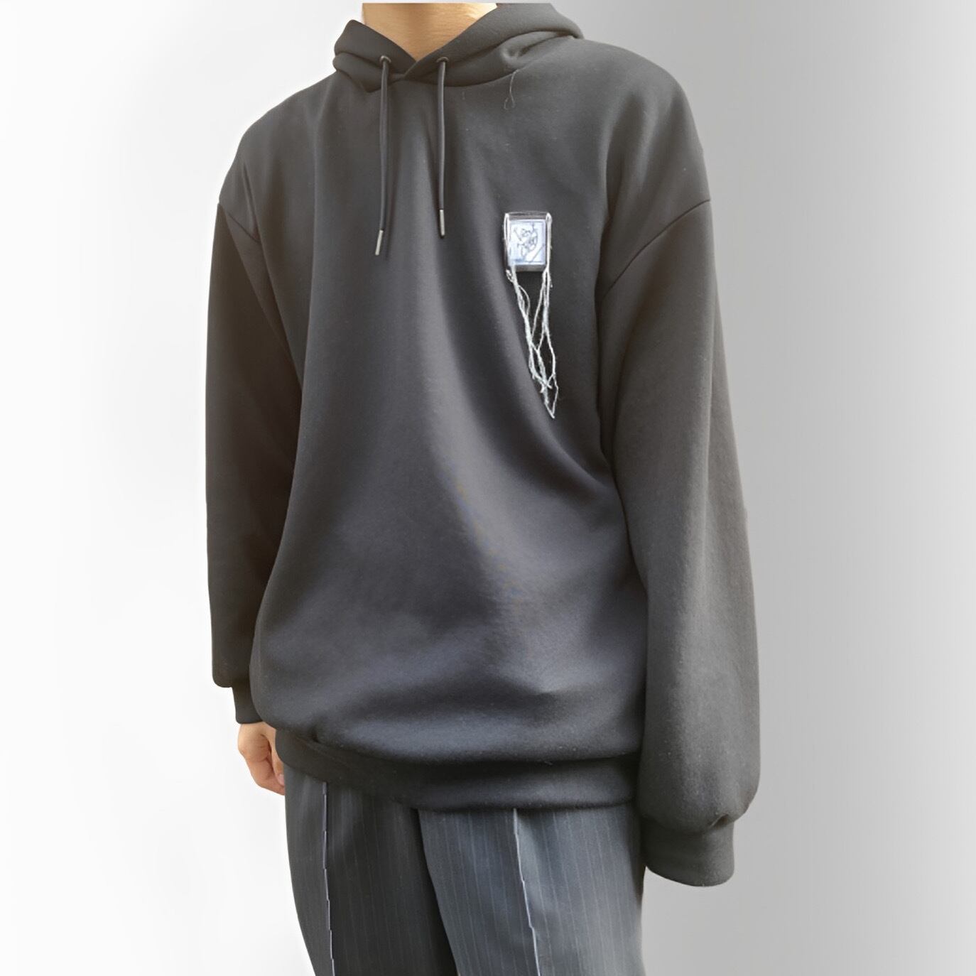 verygoodのタグを胸の位置に躾糸が垂らしてある1着。