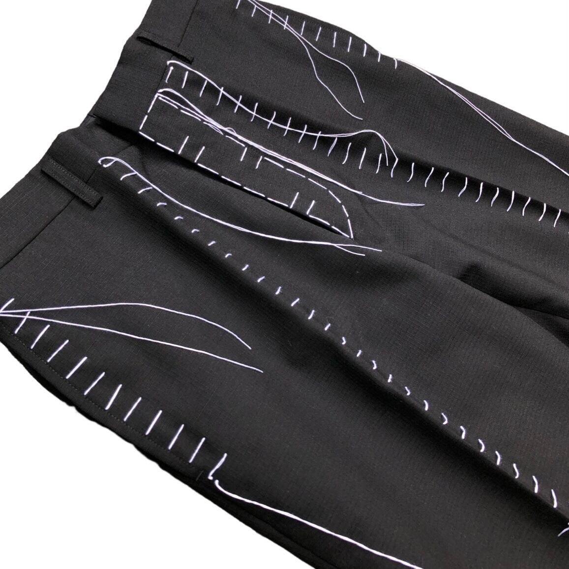 ハンドステッチを施したスラックス。