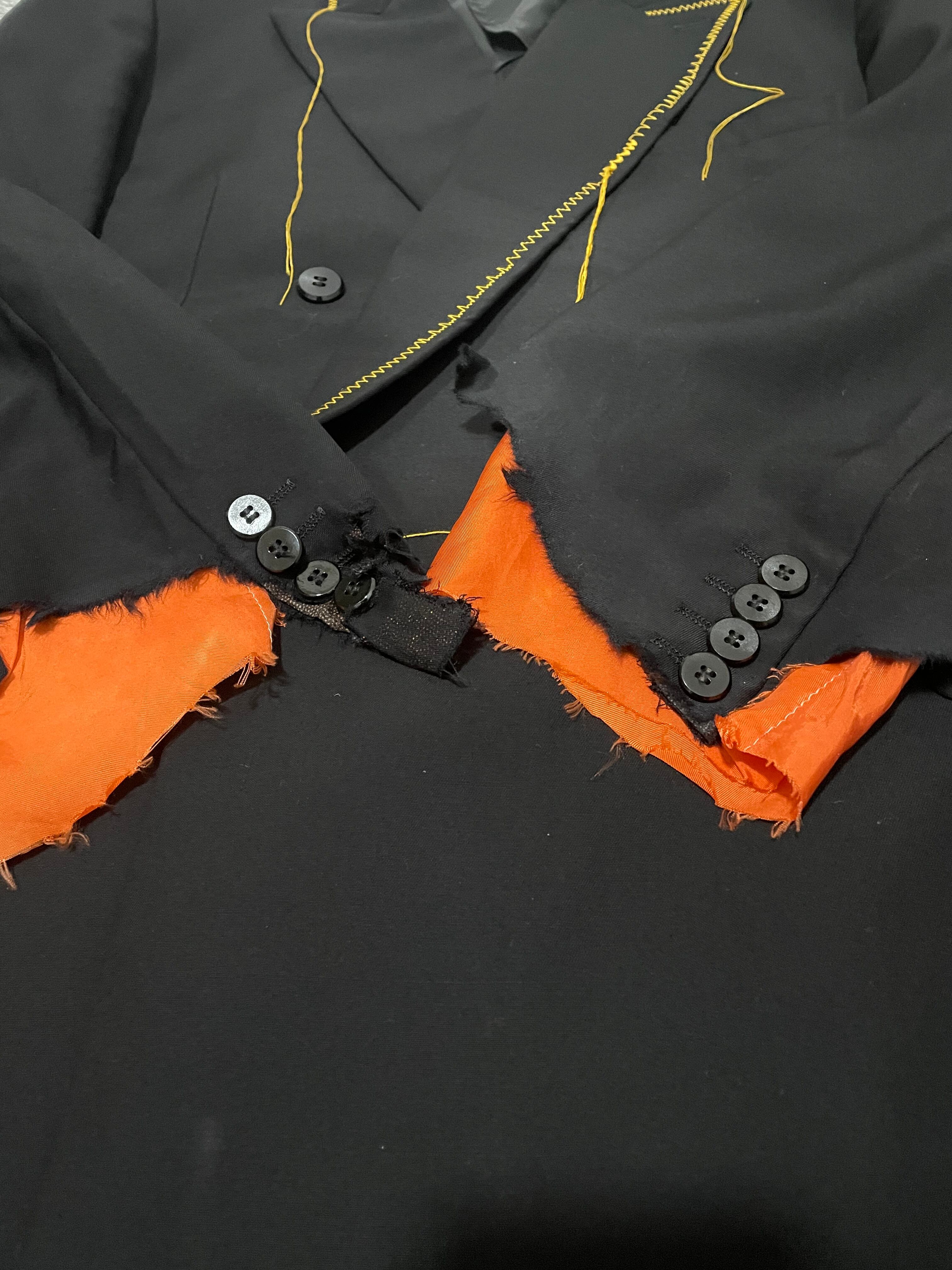 袖にダメージ加工を施し裏地を染めたジャケット