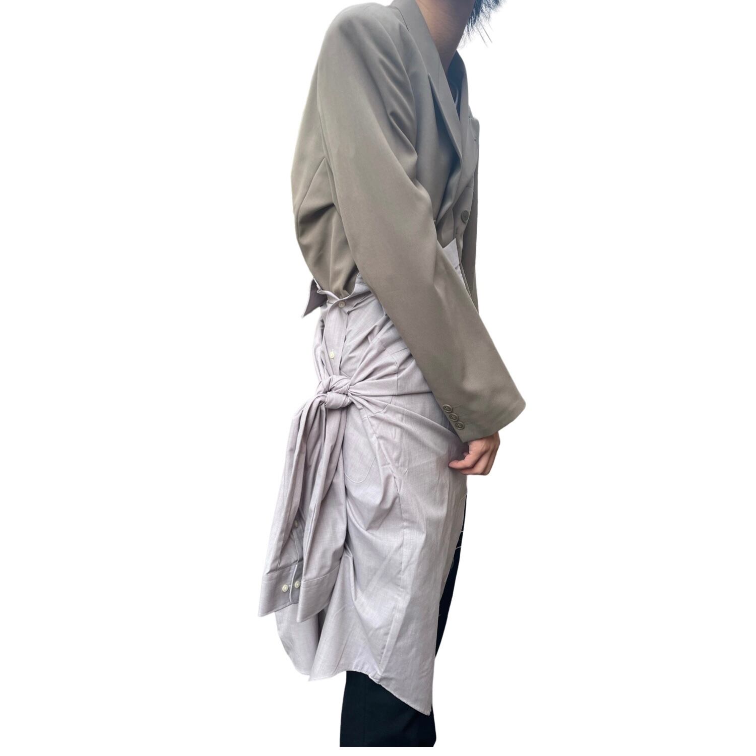 サイドでボタン、袖を結ぶことでサイドにシャツの前見頃見えるようになります。