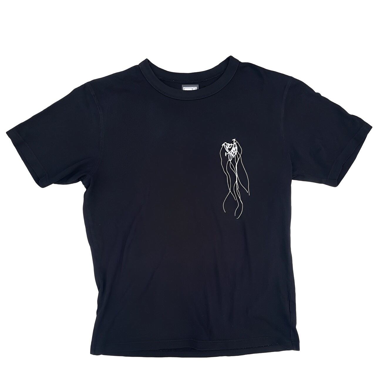 verygoodのロゴ刺繍から糸が垂れているTシャツ。