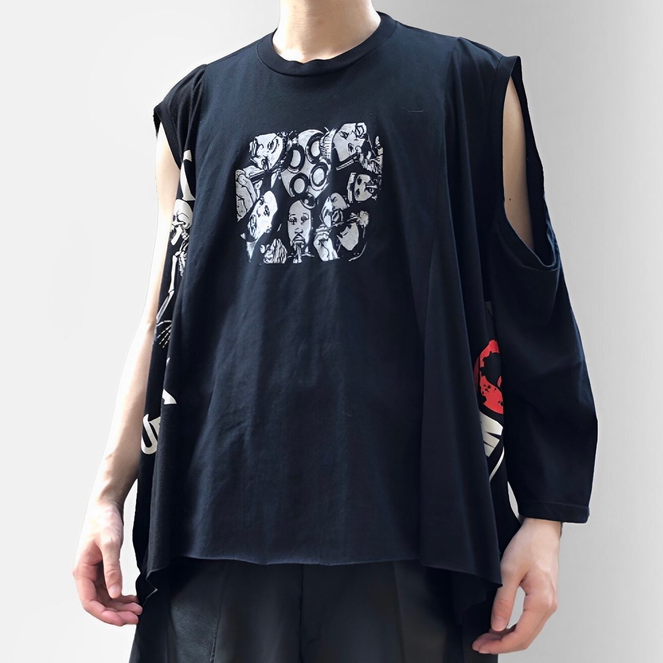カットソーを3着ドッキングしたアイテム。腕を通す場所によって着方を変えることができる。