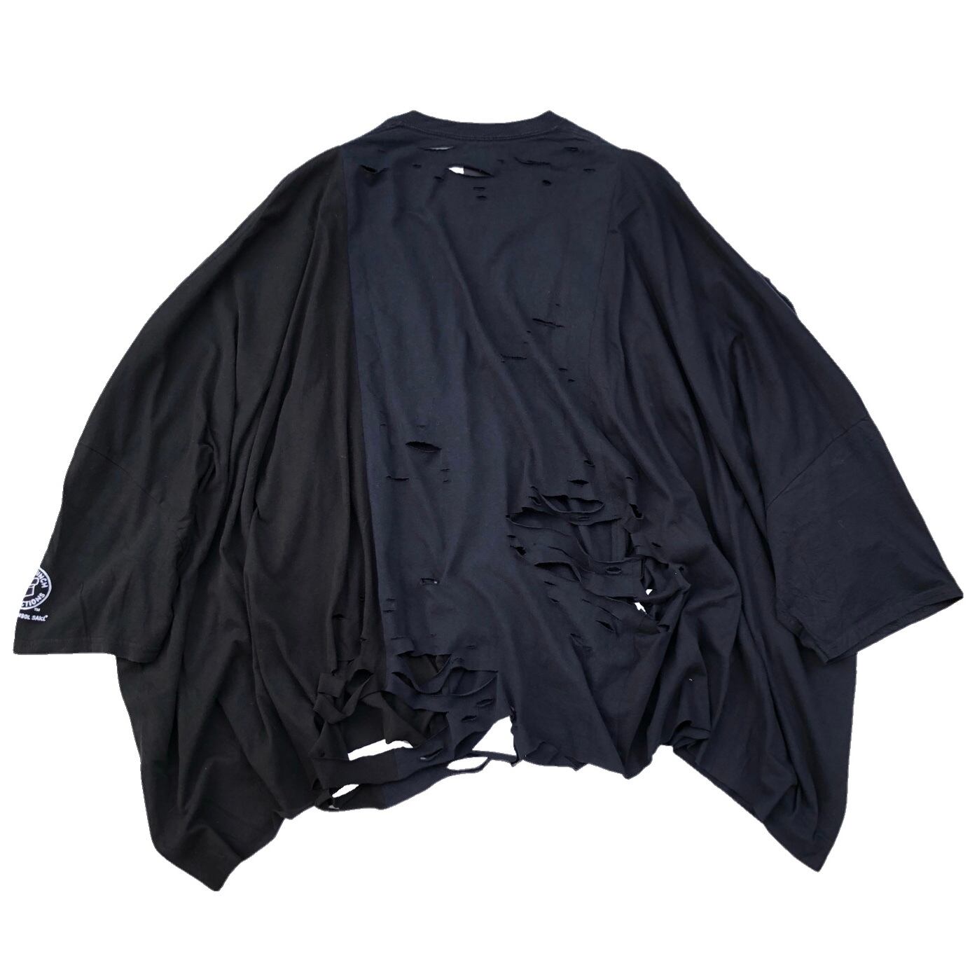 カットソーを3着ドッキングしたアイテム。腕を通す場所によって着方を変えることができる。