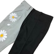 ハンドペイントを施したクロップド丈のスラックスをレイヤードしたアイテム。