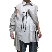 両肩に襟がついてるデザインのシャツ。腕を通す場所によって着方を変えることができる。