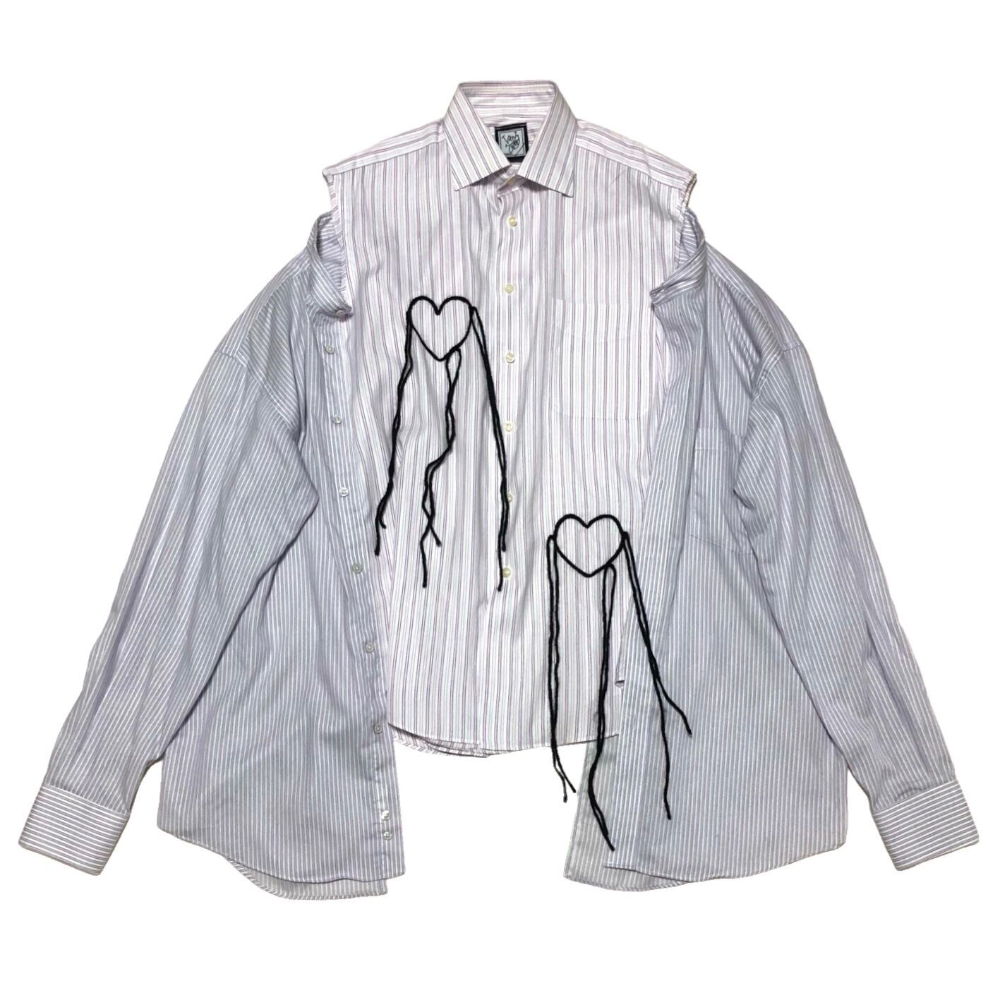 両肩に襟がついてるデザインのシャツ。腕を通す場所によって着方を変えることができる。